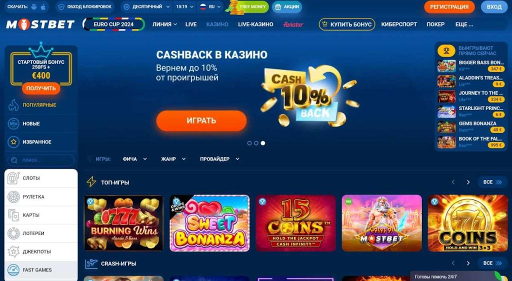 Игровые автоматы и слоты Mostbet собраны в отдельной вкладке «Казино». Здесь можно запускать как бесплатные демо-версии, так и играть на реальные деньги. Для полной активации всех функций достаточно пройти регистрацию или авторизоваться в личном кабинете.